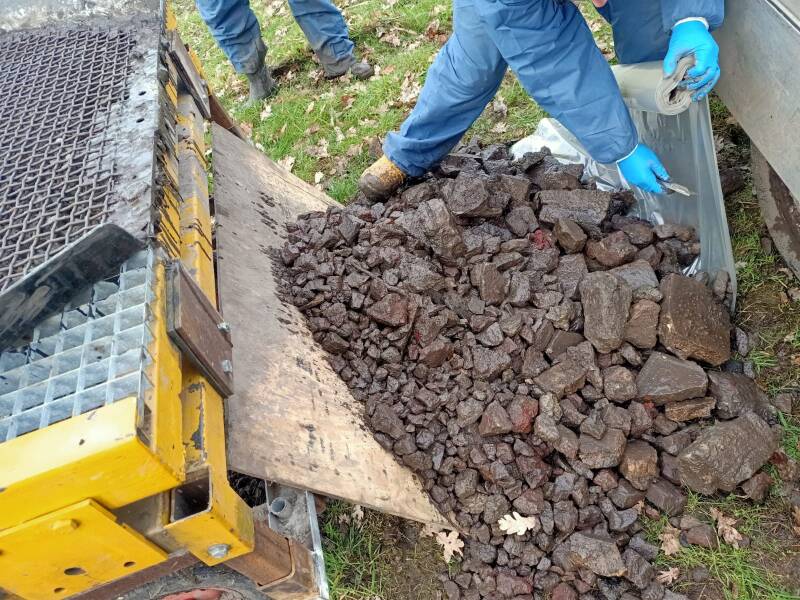 grasdallen leggen met de graafmachine..